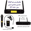 میکروفن دستی، یقه ای، هدستی اکوتک مدل ET-1860 یکی از بهترین میکروفن هایی است که در ایران توزیع شده است. طراحی بی نظیر از لحاظ کیفیت و امکانات و تطبیق پذیری فرکانسی از ویژگی های منحصر به فرد این کالا می باشد. فروش بالای این محصول در ایران و دیگر کشورهای وارد کننده این جنس بیانگر این ادعاست. کمترین میزان اعوجاج و قطعی ممکن و شفافیت صدای کپسول میکروفن از دلایل فروش بالای این محصول می باشد. این میکروفن که بر روی آن فرکانس UHF قید شده است منجر به برد بسیار بالا می شود و مناسب تمامی مکانهای بسته و باز می باشد. علاوه بر این وجود دو آنتن بر روی رسیور امکان قطعی را به شدت کاهش می دهد. همچنین رسیور این میکروفن می تواند هم به صورت با دو سیم و هم به صورت همزمان با یک سیم به آمپلی فایر متصل شود. تمام اقلام لازم جهت اتصال به آمپلی فایر همراه با این میکروفن بی سیم برای شما ارسال می شود و نیازی به خرید دیگری ندارید فقط کافی است رسیور را به ورودی میکروفن دستگاه خود وصل کرده و میکروفن را روشن نمایید. هر دو میکروفن به صورت همزمان بدون تداخل کار می کند و امکان تنظیم مجزای هر کدام از میکروفن ها وجود دارد. وجود نمایشگر LCD بر روی رسیور و میکروفن ها از دیگر ویژگی های این محصول شرکت اکوتک می باشد.
