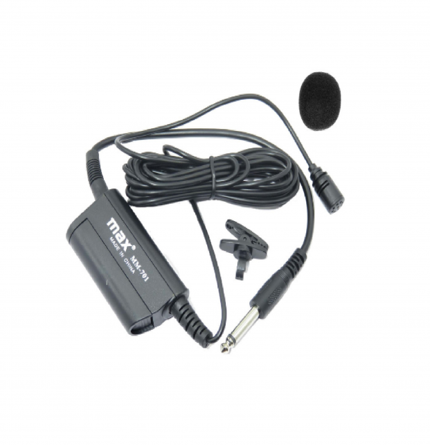 میکروفن یقه ای max بسیار پرکاربرد است که برای هماهنگی کامل با استودیو، استیج و فضای باز طراحی شده است این میکروفون به همان اندازه که برای ضبط صدای سازهایی نظیر گیتار، درامز و پرکاشن مناسب است برای ضبط صدای وکال نیز کاربرد دارد. میکروفون یقه ای با سیم که تنها با استفاده از یک عدد باطری 1.5 ولت برای راه اندازی آن کیفیت صدا و حساسیت بالای آنرا متوجه خواهید شد. این میکروفن دارای کابل 4 متری بوده و برای کلیه مصارف از جمله در دستگاه های اکو و بلندگوهای پرتابل جهت سخنرانی و اجرای برنامه استفاده می شود. از مزایای آن اندازه کوچک و قیمت مناسب آن است.